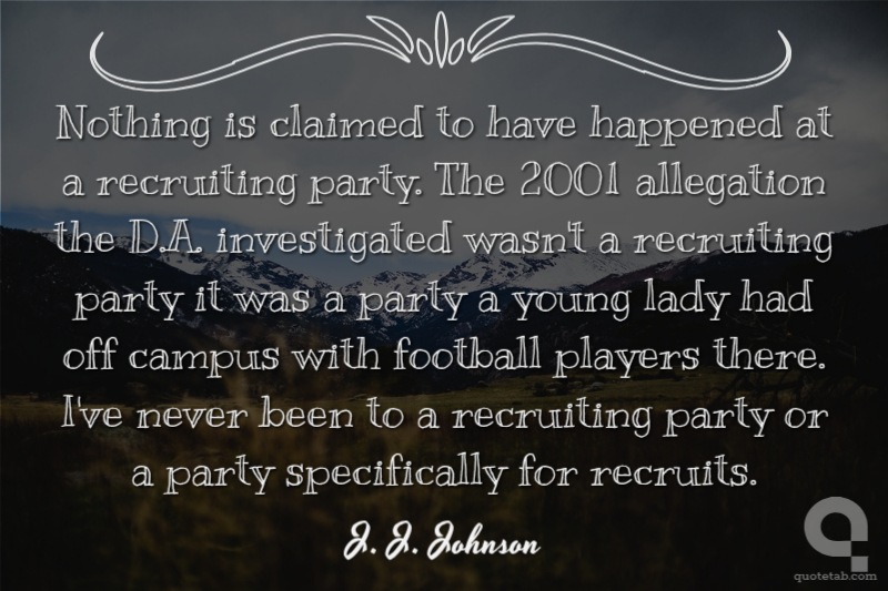 Nothing is claimed to have happened at a recruiting party. The 2001 allegation the D.A. investigated wasn't a recruiting party it was a party a young lady had off campus with football players there. I've never been to a recruiting party or a party specifically for recruits.