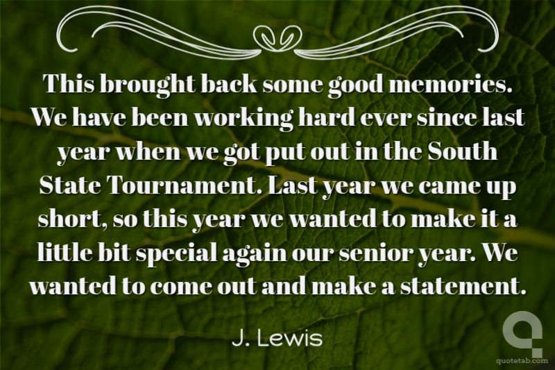This brought back some good memories. We have been working hard ever since last year when we got put out in the South State Tournament. Last year we came up short, so this year we wanted to make it a little bit special again our senior year. We wanted to come out and make a statement.