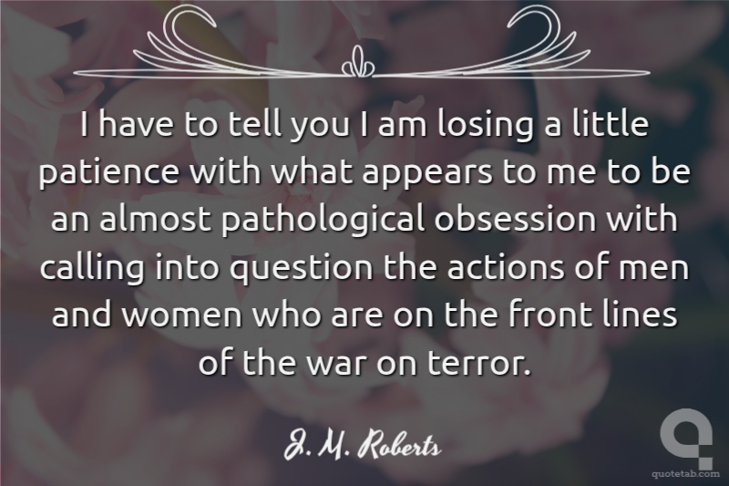 I have to tell you I am losing a little patience with what appears to me to be an almost pathological obsession with calling into question the actions of men and women who are on the front lines of the war on terror.