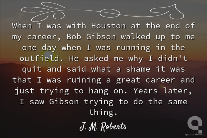 When I was with Houston at the end of my career, Bob Gibson walked up to me one day when I was running in the outfield. He asked me why I didn't quit and said what a shame it was that I was ruining a great career and just trying to hang on. Years later, I saw Gibson trying to do the same thing.