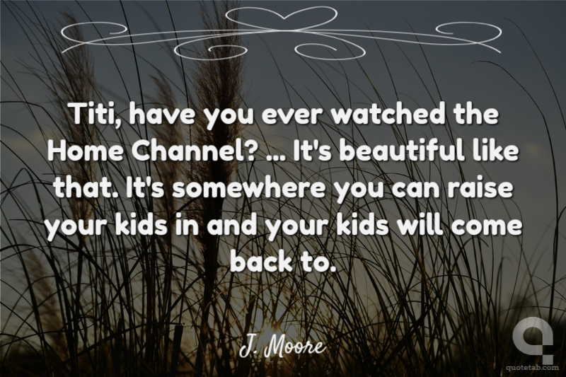 Titi, have you ever watched the Home Channel? ... It's beautiful like that. It's somewhere you can raise your kids in and your kids will come back to.
