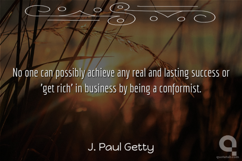 No one can possibly achieve any real and lasting success or 'get rich' in business by being a conformist.
