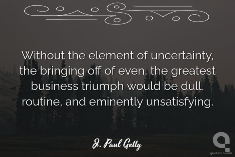 Without the element of uncertainty, the bringing off of even, the greatest business triumph would be dull, routine, and eminently unsatisfying.