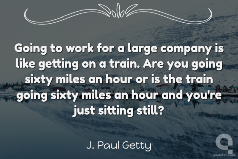 Going to work for a large company is like getting on a train. Are you going sixty miles an hour or is the train going sixty miles an hour and you're just sitting still?