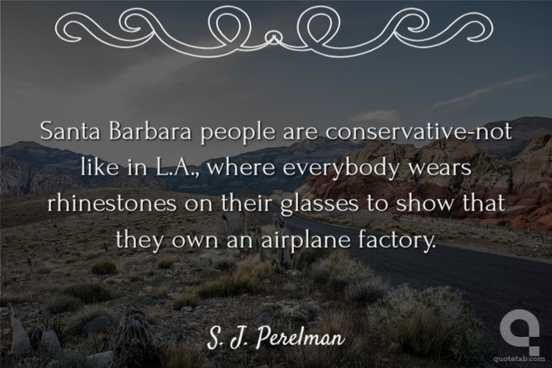 Santa Barbara people are conservative-not like in L.A., where everybody wears rhinestones on their glasses to show that they own an airplane factory.