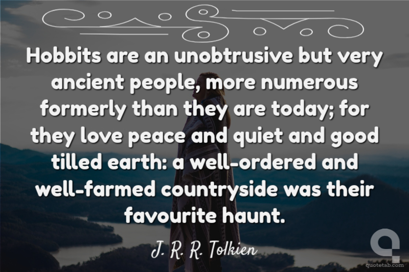 Hobbits are an unobtrusive but very ancient people, more numerous formerly than they are today; for they love peace and quiet and good tilled earth: a well-ordered and well-farmed countryside was their favourite haunt.