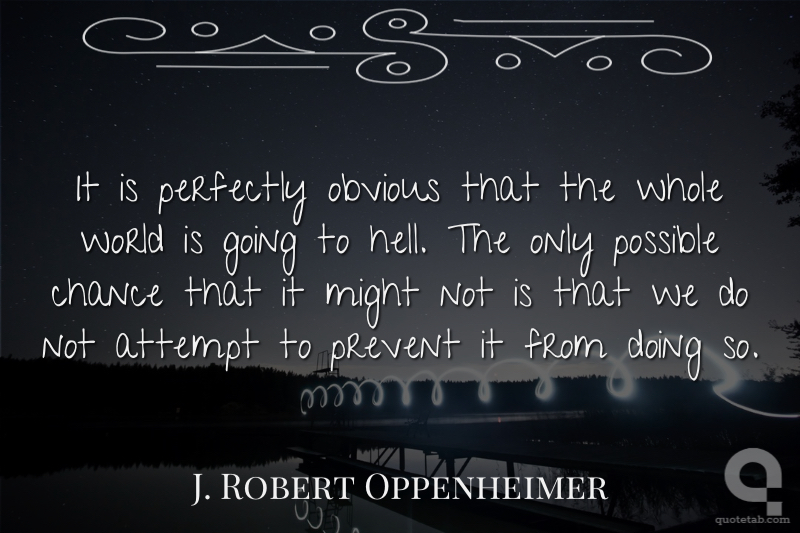 It is perfectly obvious that the whole world is going to hell. The only possible chance that it might not is that we do not attempt to prevent it from doing so.