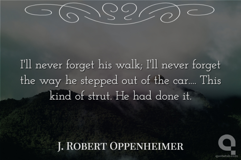 I'll never forget his walk; I'll never forget the way he stepped out of the car.... This kind of strut. He had done it.