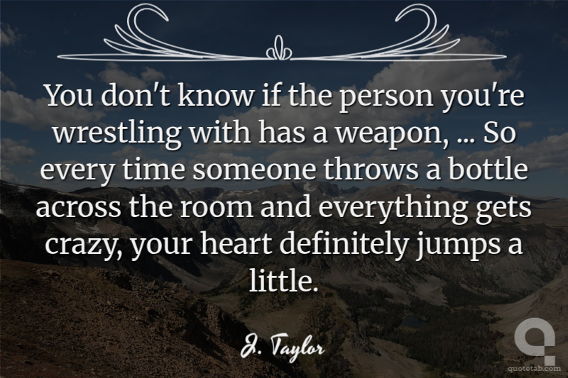 You don't know if the person you're wrestling with has a weapon, ... So every time someone throws a bottle across the room and everything gets crazy, your heart definitely jumps a little.
