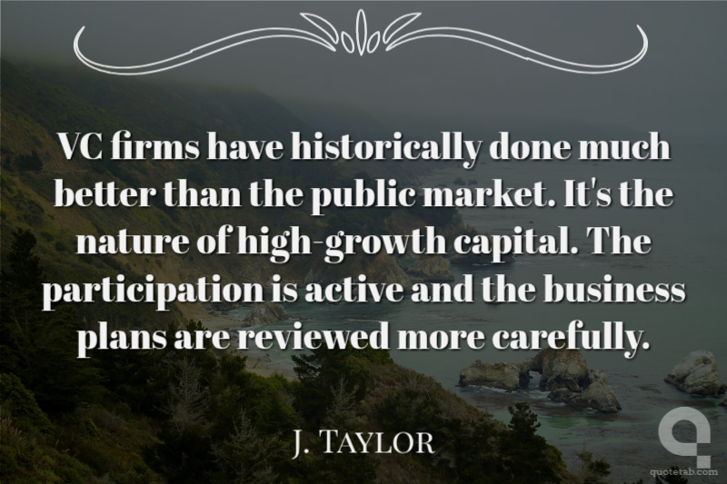 VC firms have historically done much better than the public market. It's the nature of high-growth capital. The participation is active and the business plans are reviewed more carefully.