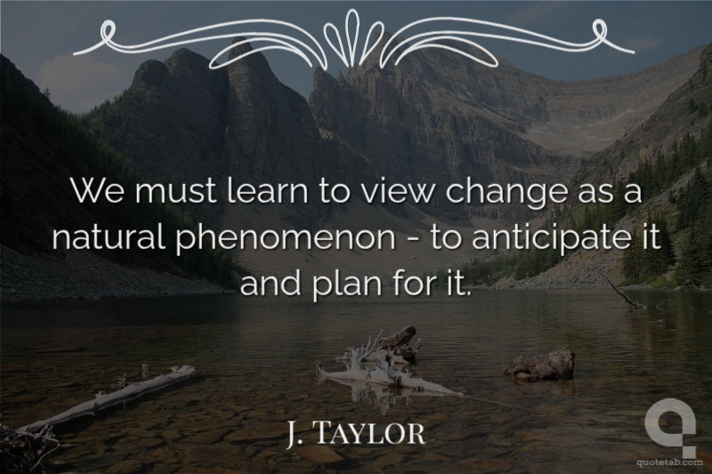We must learn to view change as a natural phenomenon - to anticipate it and plan for it.