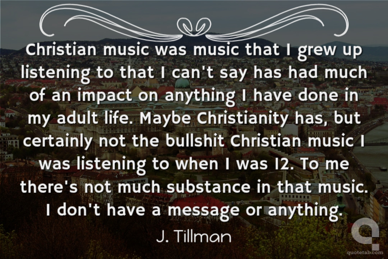 Christian music was music that I grew up listening to that I can't say has had much of an impact on anything I have done in my adult life. Maybe Christianity has, but certainly not the bullshit Christian music I was listening to when I was 12. To me there's not much substance in that music. I don't have a message or anything.