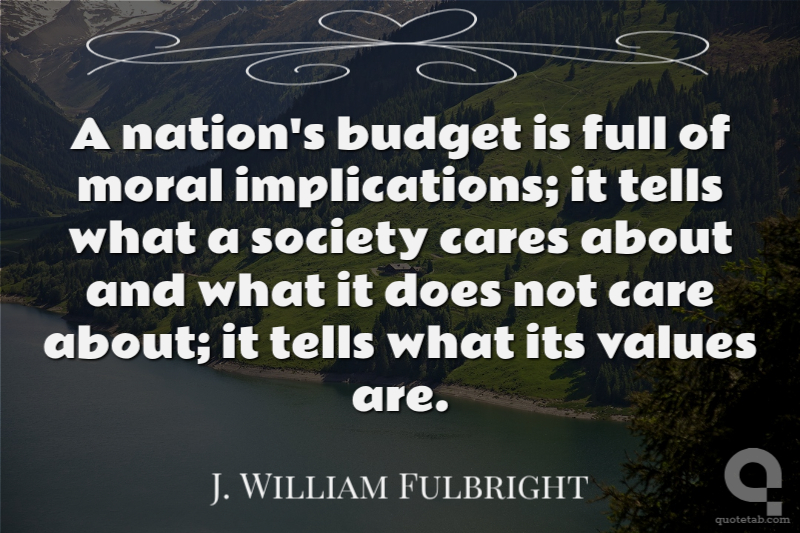 A nation's budget is full of moral implications; it tells what a society cares about and what it does not care about; it tells what its values are.