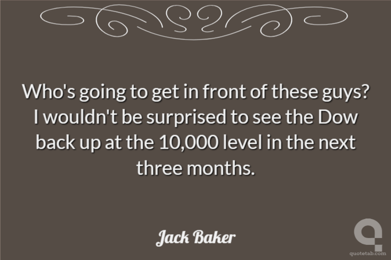 Who's going to get in front of these guys? I wouldn't be surprised to see the Dow back up at the 10,000 level in the next three months.