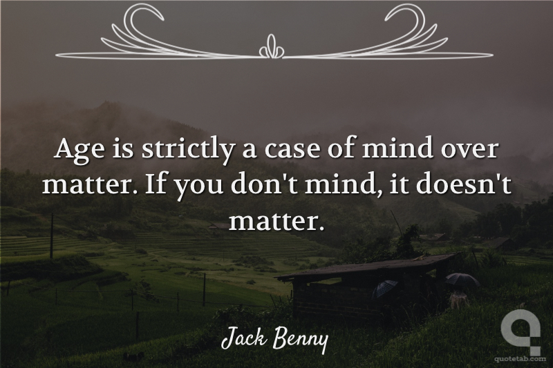 Age is strictly a case of mind over matter. If you don't mind, it doesn't matter.