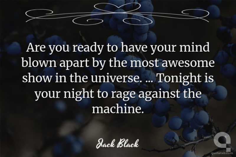 Are you ready to have your mind blown apart by the most awesome show in the universe. ... Tonight is your night to rage against the machine.