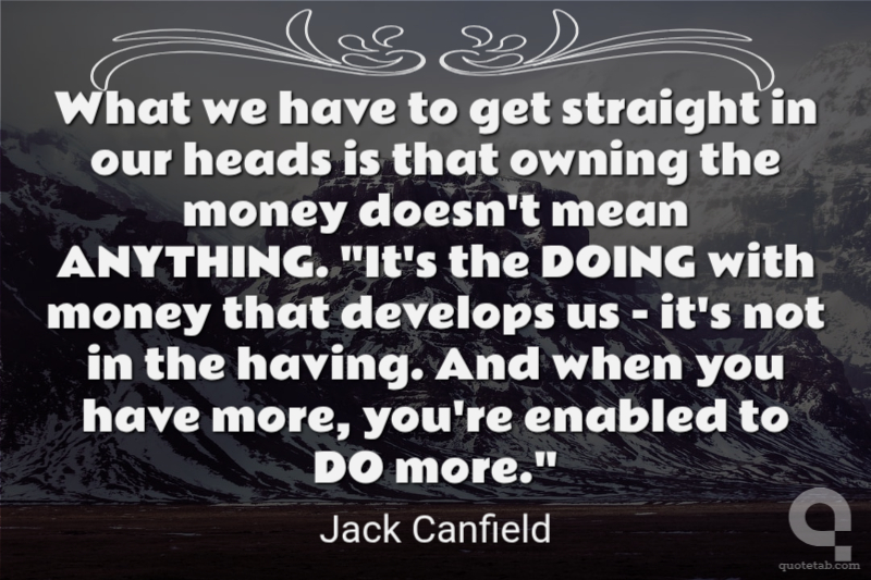 What we have to get straight in our heads is that owning the money doesn't mean ANYTHING. "It's the DOING with money that develops us - it's not in the having. And when you have more, you're enabled to DO more."