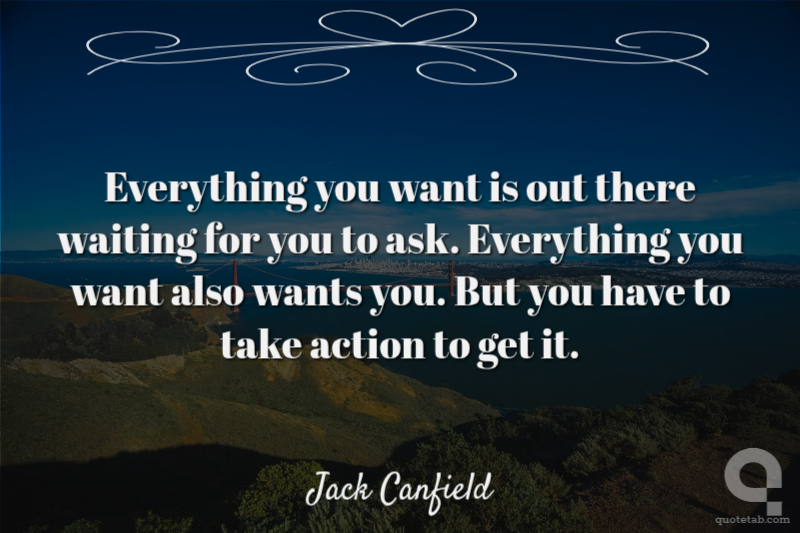 Everything you want is out there waiting for you to ask. Everything you want also wants you. But you have to take action to get it.