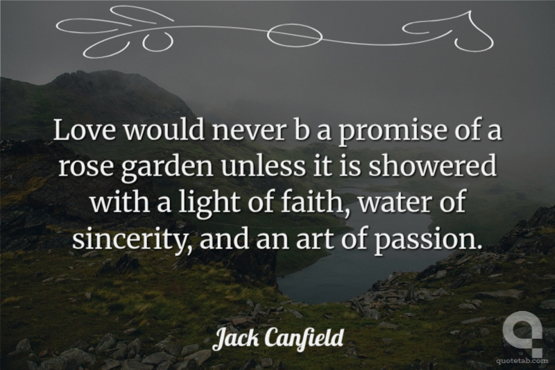 Love would never b a promise of a rose garden unless it is showered with a light of faith, water of sincerity, and an art of passion.