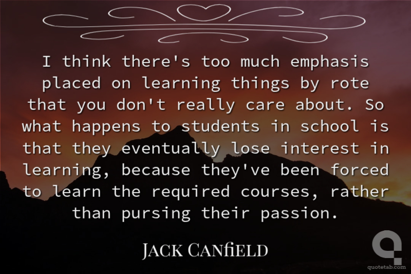 I think there's too much emphasis placed on learning things by rote that you don't really care about. So what happens to students in school is that they eventually lose interest in learning, because they've been forced to learn the required courses, rather than pursing their passion.