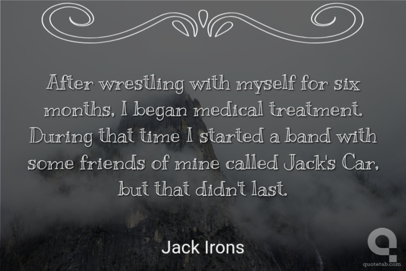 After wrestling with myself for six months, I began medical treatment. During that time I started a band with some friends of mine called Jack's Car, but that didn't last.