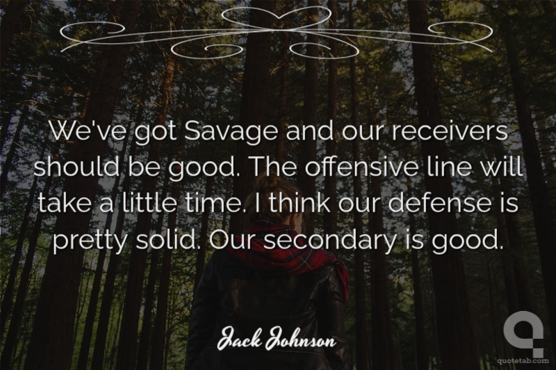We've got Savage and our receivers should be good. The offensive line will take a little time. I think our defense is pretty solid. Our secondary is good.