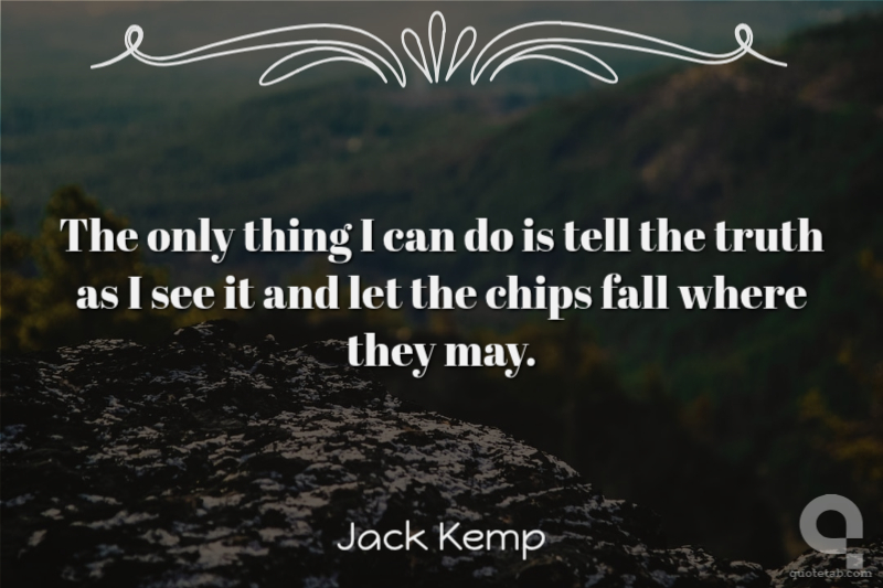 The only thing I can do is tell the truth as I see it and let the chips fall where they may.