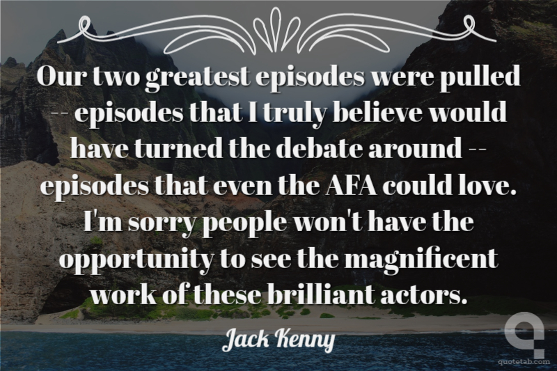 Our two greatest episodes were pulled -- episodes that I truly believe would have turned the debate around -- episodes that even the AFA could love. I'm sorry people won't have the opportunity to see the magnificent work of these brilliant actors.