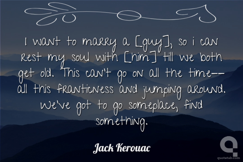 I want to marry a [guy], so i can rest my soul with [him] till we both get old. This can't go on all the time-- all this franticness and jumping around. We've got to go someplace, find something.