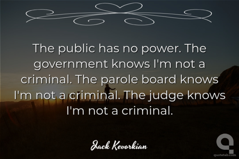 The public has no power. The government knows I'm not a criminal. The parole board knows I'm not a criminal. The judge knows I'm not a criminal.