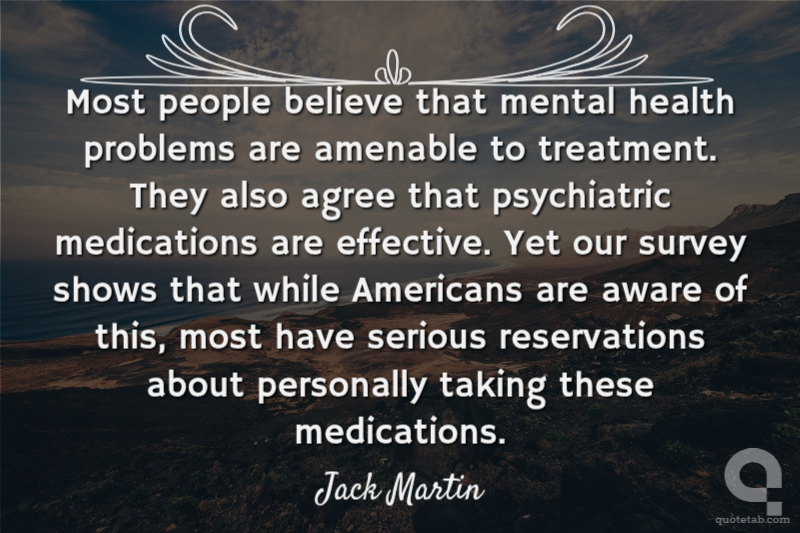 Most people believe that mental health problems are amenable to treatment. They also agree that psychiatric medications are effective. Yet our survey shows that while Americans are aware of this, most have serious reservations about personally taking these medications.