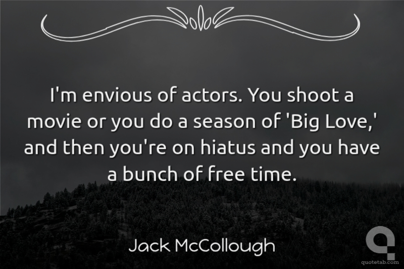 I'm envious of actors. You shoot a movie or you do a season of 'Big Love,' and then you're on hiatus and you have a bunch of free time.