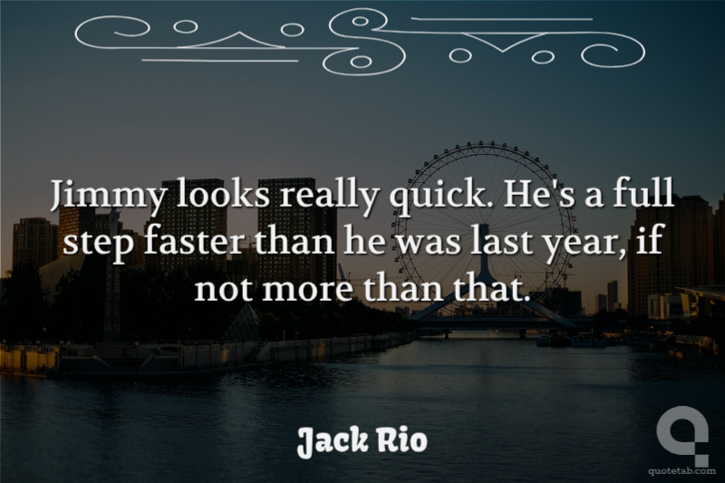 Jimmy looks really quick. He's a full step faster than he was last year, if not more than that.