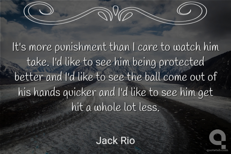 It's more punishment than I care to watch him take. I'd like to see him being protected better and I'd like to see the ball come out of his hands quicker and I'd like to see him get hit a whole lot less.