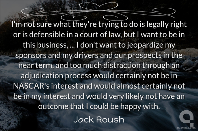 I'm not sure what they're trying to do is legally right or is defensible in a court of law, but I want to be in this business, ... I don't want to jeopardize my sponsors and my drivers and our prospects in the near term, and too much distraction through an adjudication process would certainly not be in NASCAR's interest and would almost certainly not be in my interest and would very likely not have an outcome that I could be happy with.
