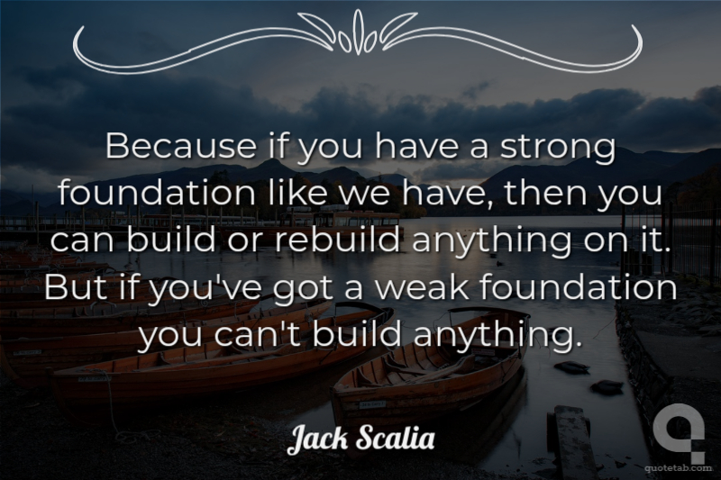 Because if you have a strong foundation like we have, then you can build or rebuild anything on it. But if you've got a weak foundation you can't build anything.