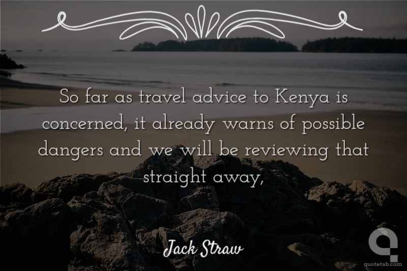 So far as travel advice to Kenya is concerned, it already warns of possible dangers and we will be reviewing that straight away,