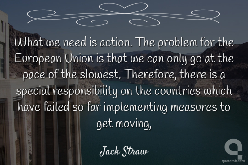 What we need is action. The problem for the European Union is that we can only go at the pace of the slowest. Therefore, there is a special responsibility on the countries which have failed so far implementing measures to get moving,