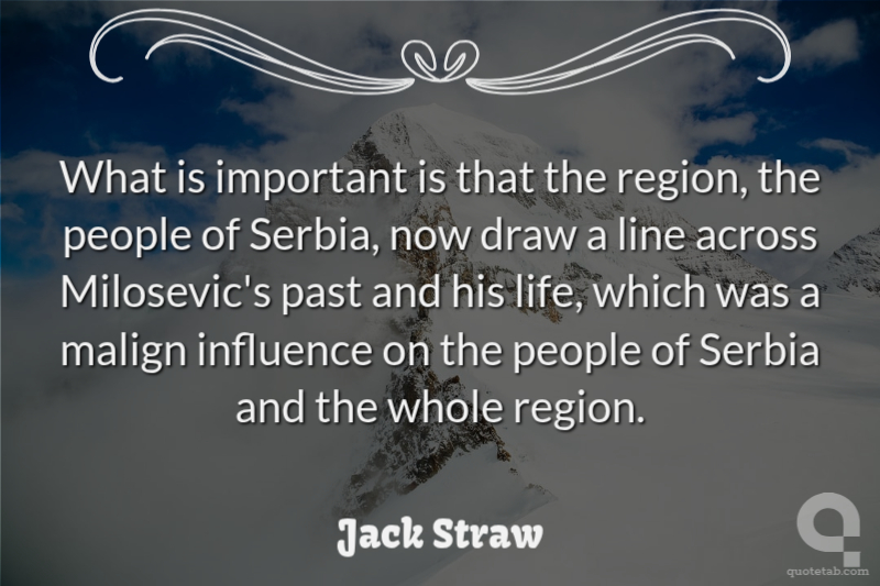 What is important is that the region, the people of Serbia, now draw a line across Milosevic's past and his life, which was a malign influence on the people of Serbia and the whole region.
