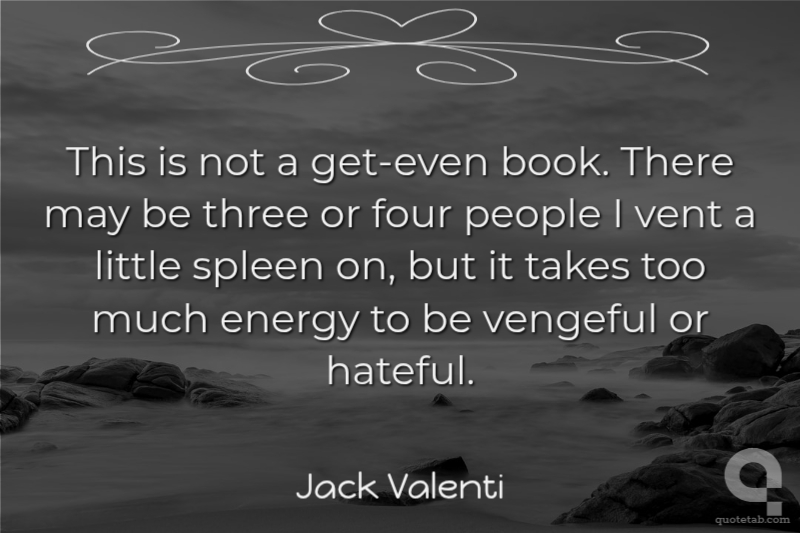 This is not a get-even book. There may be three or four people I vent a little spleen on, but it takes too much energy to be vengeful or hateful.