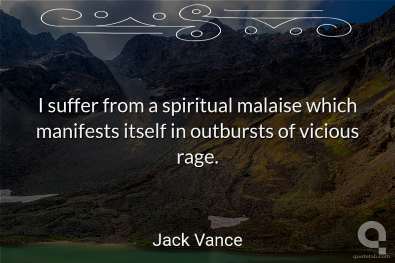 I suffer from a spiritual malaise which manifests itself in outbursts of vicious rage.