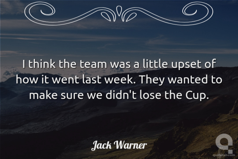 I think the team was a little upset of how it went last week. They wanted to make sure we didn't lose the Cup.