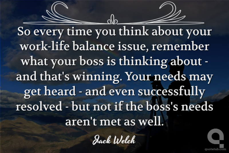 So every time you think about your work-life balance issue, remember what your boss is thinking about - and that's winning. Your needs may get heard - and even successfully resolved - but not if the boss's needs aren't met as well.
