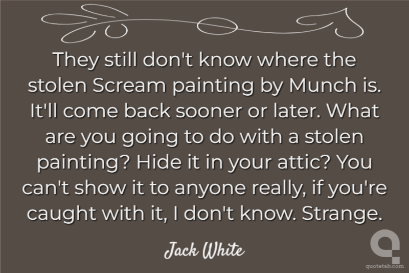 They still don't know where the stolen Scream painting by Munch is. It'll come back sooner or later. What are you going to do with a stolen painting? Hide it in your attic? You can't show it to anyone really, if you're caught with it, I don't know. Strange.
