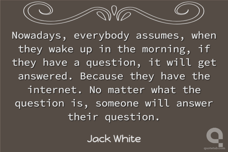 Nowadays, everybody assumes, when they wake up in the morning, if they have a question, it will get answered. Because they have the internet. No matter what the question is, someone will answer their question.