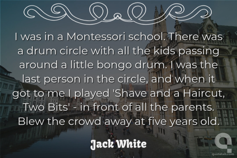 I was in a Montessori school. There was a drum circle with all the kids passing around a little bongo drum. I was the last person in the circle, and when it got to me I played 'Shave and a Haircut, Two Bits' - in front of all the parents. Blew the crowd away at five years old.