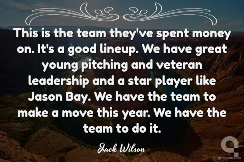 This is the team they've spent money on. It's a good lineup. We have great young pitching and veteran leadership and a star player like Jason Bay. We have the team to make a move this year. We have the team to do it.