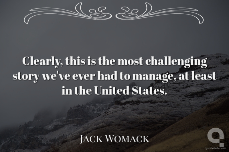 Clearly, this is the most challenging story we've ever had to manage, at least in the United States.