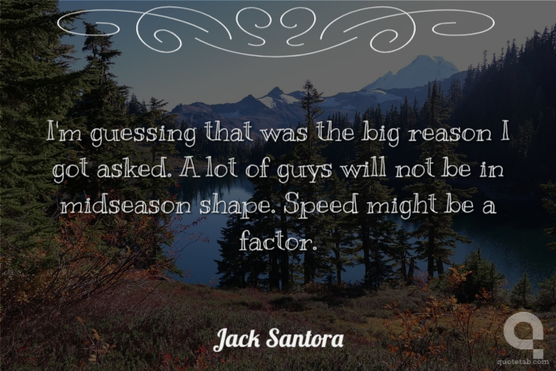 I'm guessing that was the big reason I got asked. A lot of guys will not be in midseason shape. Speed might be a factor.