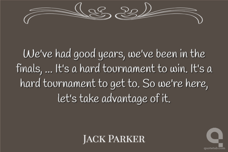 We've had good years, we've been in the finals, ... It's a hard tournament to win. It's a hard tournament to get to. So we're here, let's take advantage of it.